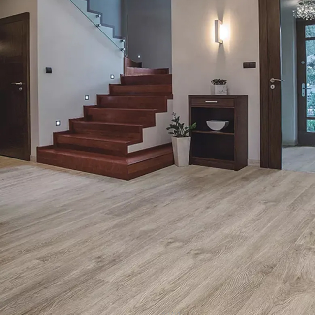 SPC flooring (Rigid Core Flooring) stands for Stone Plastic Composite. The main component is lime stone (calcium carbonate)+ PVC Powder + Stabilizer. It is much more stable, waterproof, fire resistant